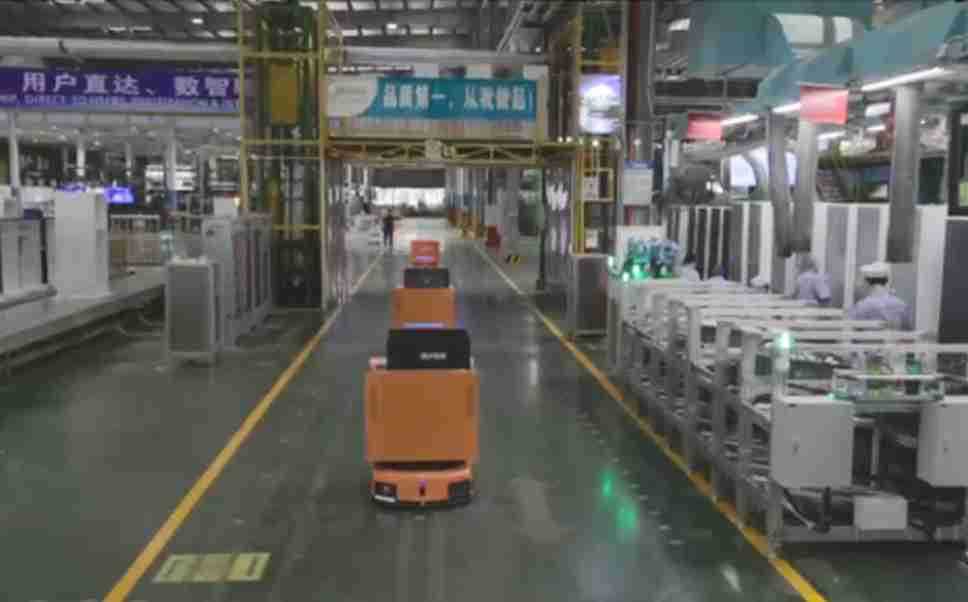 为车载冰箱物流配送打造的智能解决方案,,,包含产中物流通过潜伏举升AMR搬运至线边,,产后成品物流智能仓储,,,流程包含产中物流智能齐套入库,,线边安灯叫料AMR智能配送至线边,,成品入库、、出库,,,通过无人堆高车机器人,,,,智能仓储管理替代人工作业管理,,,实现更高存储、、更高效率、、、更具柔性化的解决方案。。。